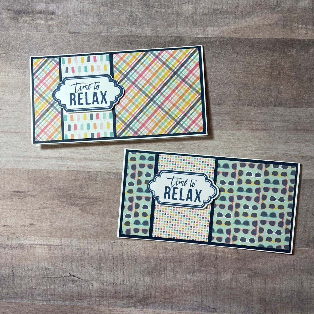 Hello my fellow creators. More of this week was spent sorting, purging and organizing supplies in my new craft space. I did manage to play for a bit. I used Echo Park’s “Summer Dreams” 6×6 paper pad to make some mini slimline cards. The whole process took me an hour, which is pretty good considering I made eleven cards. I began by selecting the papers I wanted to use from the paper pad. Once I chose the papers, it was as easy as cutting each 6×6 paper in half to fit on a mini slimline card. I cut the card bases from some Recollections white card stock. I cut them at 6.5′ by 6.25″ then scored at 3.25″ along the 6.5″ side. I then chose a few more patterned papers from the pad to add to the first patterned paper. I thought this would break it up a bit and give it more interest. I layered the smaller pieces of patterned paper (1.5″ x 3″) onto some navy card stock I had in my stash (probably from Michael’s). I then added this to the larger piece of patterned paper. I layered this onto some more navy card stock and then added it to the card base, leaving a small white border. I cut out some labels using the “Just for You Labels” set by Lawn Fawn. I stamped the border onto the label using some Gina K “In the Navy” ink. I then added the sentiment to the label using the “Sea You Soon” stamp set by Simon Says Stamp. Once I had all the sentiment labels ready, I added some foam tape to them and adhered them to the cards. I’m really liking the mini slimline cards and am sure I will be making more. I hope you enjoy this week’s video as much as I enjoyed making it.