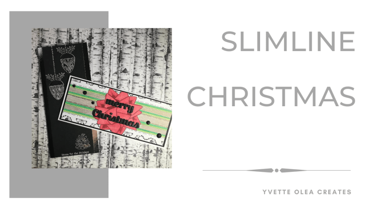 I work on Christmas cards throughout the year in order to get the 300 I need for my annual donation to a local skilled nursing facility. My father used to be at this facility and I every time I would visit him, I noticed how lonely many of the residents looked. After my dad passed away, I thought a good way to honor his memory would be to give some cheer to the residents of the facility. For this batch of cards, I thought I would give making slimline cards a try.
